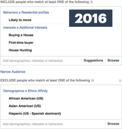 But here’s the question: could they have been real? Yes — and our ability to limit the audience by race, religion, and gender — among other legally protected attributes — points to the same problem my colleagues Terry Parris Jr. and Julia Angwin reported out a year ago, exciting much outrage from people who care about fixing discriminatory housing practices. Here’s what they tested last year: