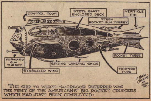 In 1929, Buck Rogers imagines America’s future spacecraft for space wars.