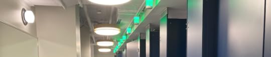 Thankfully, the line moves fast. The renovation architects did a good job estimating restroom demand. When we enter the formerly separate restrooms, now combined into one Olympic-worthy stretch of floor-to-ceiling laminate stalls, occupancy lights flash red or green over each door. Each person hesitates, eyes a fresh green light, and makes the dash to their private space. Where they are greeted with a smiley-face sign admonishing you to put the seat down.