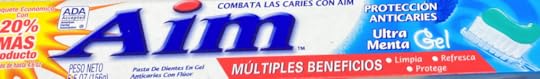 I don’t use any of those toothpastes. I use AIM, a reddish gel, manufactured in New Jersey. AIM sells for $1.19 cents per 5.5-ounce tube at my local Target, as opposed to $2.79 for a similar size tube of Colgate or Crest. If you live near a Family Dollar, you can still get AIM for a mere 99 cents.