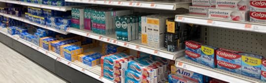 So if AIM is equally good at less than half the price, it must dominate the market, right? The toothpaste aisle of my Target has rows and rows of Colgate and Crest, in a dizzying array of tube sizes, with a variety of embedded features. On the bottom shelf sits a single-wide stack of AIM.