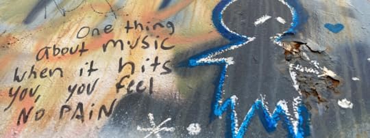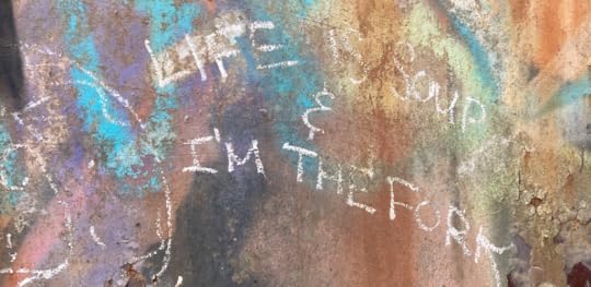 Atop Mackerel Hill is an aging water tower. Dull grey and rust, except for the first six or eight feet from the base. Graffiti artists spray-paint angst on this psychotic ground. I ponder the images and words that can only be seen by those who trod the path; thick brush hides the color and doubt from cars passing by Trapelo Road. The sentiments might well reflect the mindset of previous residents; they don’t square with our mantras of healthy living. And yet each image draws a direct response from me. They resonate.