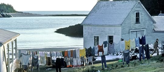 I love the image of the clothes drying near the sea. Ms. Richardson apparently does as well. Never mind that there are more grey, drizzly days on the Maine coast than sunny ones; that hanging laundry is an arduous task; collecting it later as well. That air-dried laundry is time consuming work, almost always relegated to women, binding them to the home.