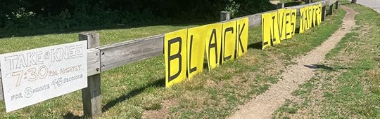 Some evenings brought a steady stream of honking horns. Occasionally, a passing driver stopped, bringing all traffic to a halt for eight minutes and forty-six seconds. After the timer chimed, participants spoke, if inclined. African-Americans applauded. On Juneteenth our modest vigil was a designated activity of Movement 4 Black Lives. Over seventy-five people took a knee on that stretch of grass. Our numerical zenith.