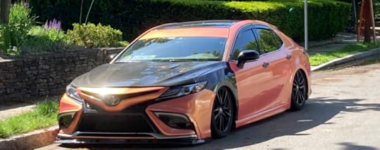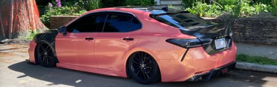 The other day, riding my bike, this car passed me. Wow! First thing I noticed was the color, some kind of mango peach. Very tropical. Then of course, there was its relationship to the ground. Tight. As if the static earth and the moving vehicle were kissing cousins. The black accents. The spoiler. The articulated rear exhaust. Also the model: Camry. When did a Camry become hot?