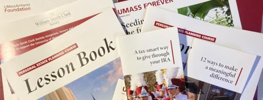 A maroon folder with a handful of brochures ripe with photos of smiling graduates and catchy titles like, “12 Ways to Make a Meaningful Difference,” “A Tax-smart Way to Give through your IRA,” and “Personal Estate Planning Course Lesson Book.” Plus a letter from Joseph J. Kayne, Senior Director of Gift Planning, welcoming me to the William Smith Clark Society. In addition, there was the maroon blanket with UMass Amherst logo.
