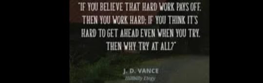Reading Hillbilly Elergy was like cycling down a long, unmarked, dead-end road. These folks don’t have any good way to move forward, and an awful lot of backtracking just to get on the main road. It also brought me to my personal limits of empathy. Not a comfortable place to be. It also signifies another similarity between the titled hillbilly’s and me. We are imperfect human beings, every one of us.