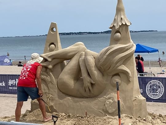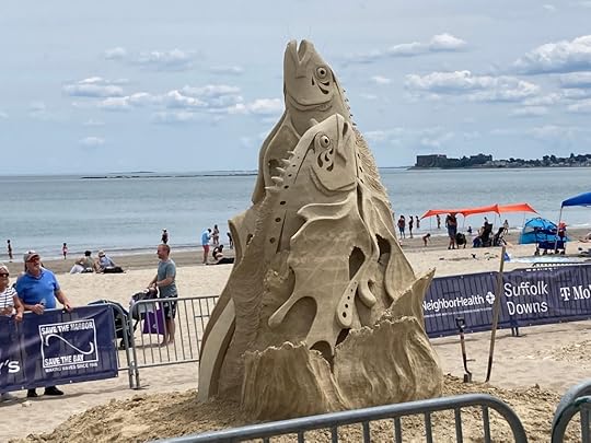 I pedaled over to Revere Beach on a gorgeous July day to see the sand sculptures at the 20th Annual Revere Beach International Sand Sculpting Festival. Got say, Revere Beach is looking better than any time in my 40+ years around Boston. The crowd was large and friendly and full of energy. What the artists do with nothing but sand and water is amazing.