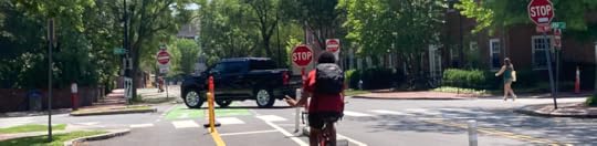 Often, when I slide toward the middle of a multi-lane road, slow down, and put out my arm to indicate a left turn, a well-intentioned oncoming driver slows, stops, and waves me on. Unfortunately, they’ve just blocked my view of any vehicle coming up on their right. So, I don’t move. I wave them on. They signal back, more emphatically. Then they get aggravated, sometimes even roll their window and decry my ungratefulness. Meanwhile, I’m straddling my bike in the middle of the road. Vulnerable, to be sure, but in less danger than crossing the yellow line without determining all is clear. Which I can’t do until the well-intentioned driver moves out of the way. Thus, another cyclist/motorist interaction turns sour.