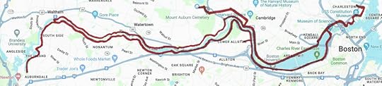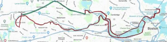 Eureka! I will circle the Charles River! Dedicated footpaths. Few intersections. A full loop from Charlestown to Waltham and back is about 40 miles. Besides, in the (highly) unlikely case that I can’t complete the journey, I’ll never be more than a mile from a train or bus to carry me home.