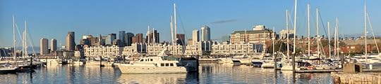 My early departure enables serendipitous timing. The sky outline glows the skyline at 4:45. The sun illuminates the Longfellow Bridge arches at 5:07. Boats glimmer in Charlestown marina at 6:08.