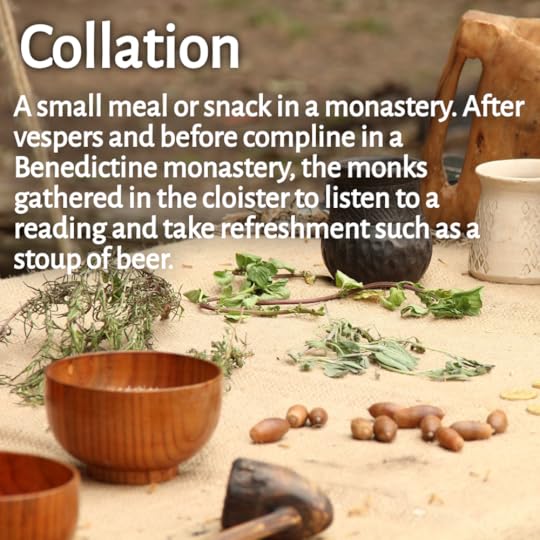 It's been a couple months since I've shared a medieval word of the month. With all the celebratory events for Wishes Under a Highland Star, those medieval posts were set aside. Now, it's a new year and unique word: Collation. I thought this word is perfect for January. It takes a few weeks for me to settle back into my regular eating pattern after enjoying the holiday baking and cooking.
