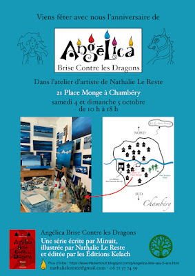 Nous sommes heureux et fiers de fêter les 5 ans de la série Angélica Brise Contre les Dragons ! Une trilogie qui sait allier tradition et modernité dans un style original et captivant. Nous pourrions en parler des heures mais celles qui le feront le mieux ce sont Minuit et Nathalie Le Reste. Alors n'hésitez pas à venir nous rencontrer les 4 et 5 Octobre pour faire la fête ! Bonne humeur, partage et cuillères en bois assurées ;-) Et longue vie à Angélica !