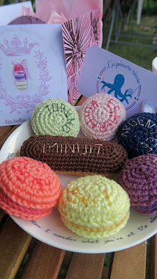 Je n'ai pas eu droit qu'à des cuillères en bois en ce début de semaine... mais aussi à une succulente boite de macarons de laine réalisés au crochet, ainsi qu'à un éclair au chocolat ! Le tout brodé avec les prénoms des belles disparues... et le mien ! Cette fois, il s'agit d'une réalisation de @lapieuvrerieuse ! 😍