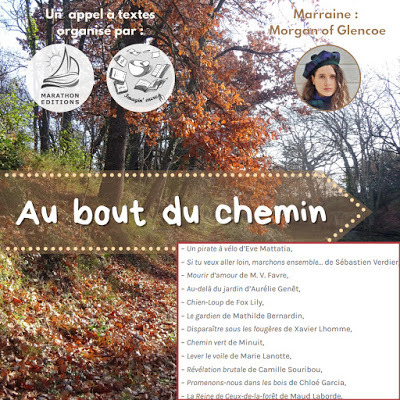 Suite à l'appel à textes lancé par les éditions Marathons, avec la participation d'Imagin'encre et de Morgan of Glencoe, je suis ravie qu'une de mes histoires ait été sélectionnée pour figurer dans l'anthologie Au bout du chemin, qui paraîtra prochainement aux Editions Marathons !