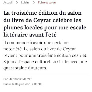 🌻Ce week-end, nous serons au salon du livre de Ceyrat avec Nathalie Le Reste ! Retrouve toutes les infos dans cet article de La Montagne ! De nombreux auteurs à découvrir pour faire le plein de livres avant l'Été !