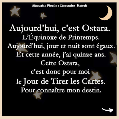 A cette occasion je t'invite à (re)découvrir les premières lignes du tome 1 Cassandre, à retrouver aux éditions Kelach