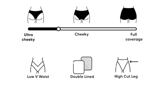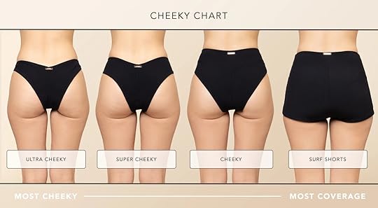 Choose your cheekiness!Different bodies and comfort levels require OPTIONS. So I designed five bikini bottoms with different rises, cuts, and cheek coverage. Here they are, in order from most to least cheeky: