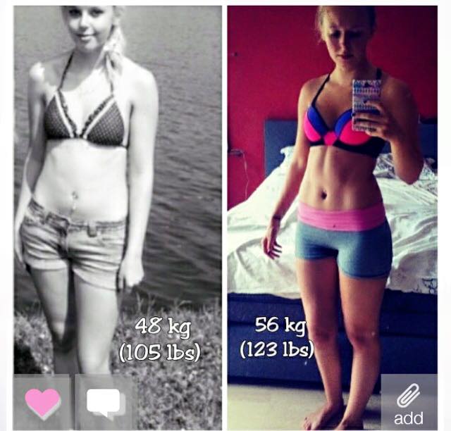 Isabelle (@thefitbelle) was less than 90lbs and now she’s around 118lb! After a year of changing her lifestyle, she was able to make better eating and exercise habits. She found happiness and is full of much more energy than she was before! We are so happy with her results and think she looks BEAUTIFUL!