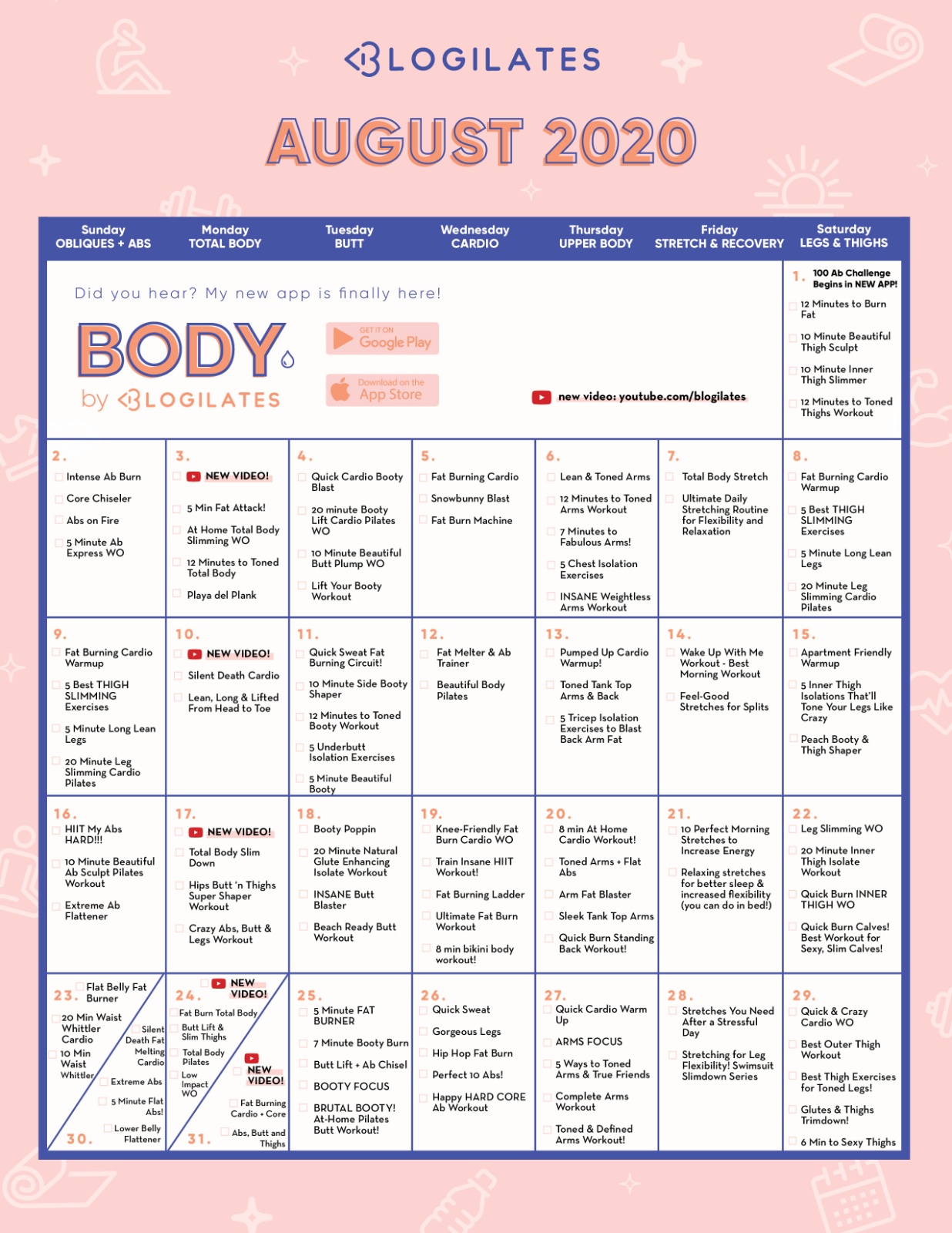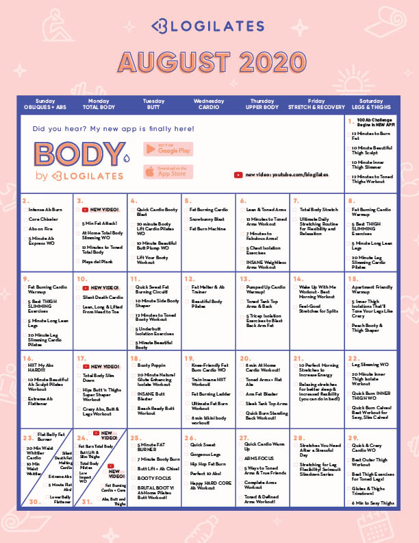 The post The Blogilates August 2020 Workout Calendar! appeared first on Blogilates.