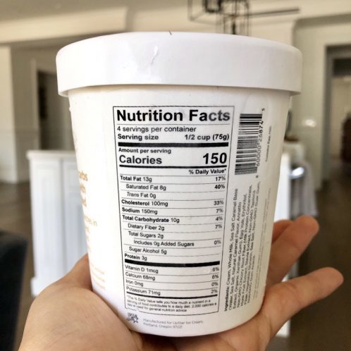 The ice cream claims to have 3g of net carbs per serving, which is true if you subtract all the sugar alcohols. But if I’m being “safe”, the calculation would be 5.5 net carbs per serving.