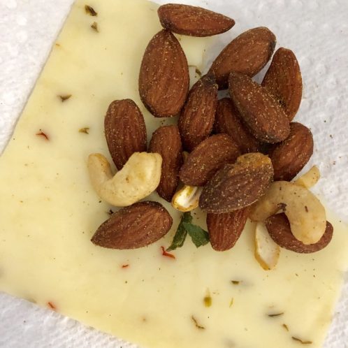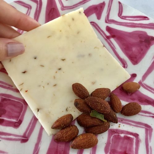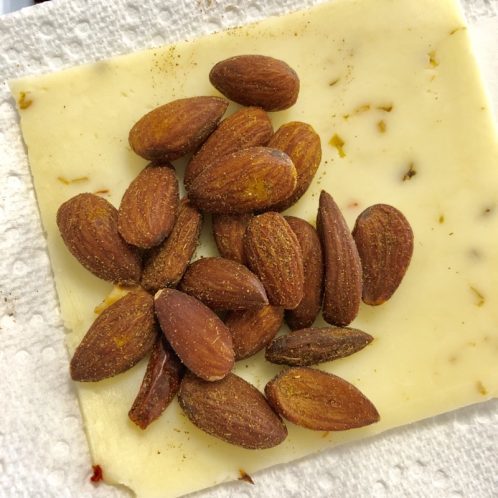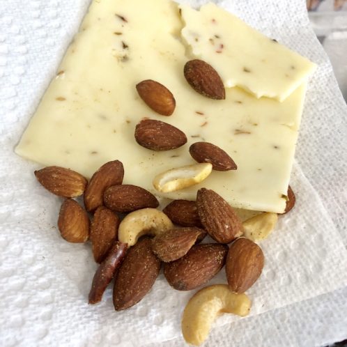 Post lunch snacks – a slice of pepperjack cheese plus thai chili almonds and cashews.