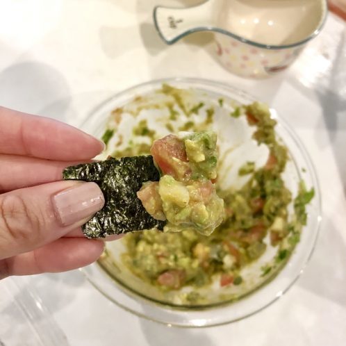 Pre-dinner snack: Homemade guac with seaweed crisps!