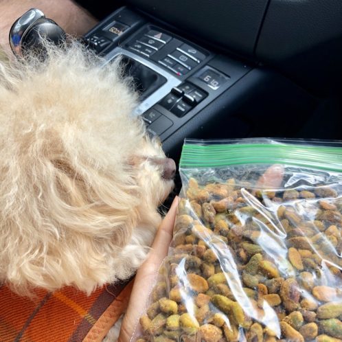 As soon as I got in the car, I ate some chili roasted pistachios. No, not the whole bag guys. This bag is supposed to last me a week or so at the office for snack time!