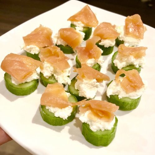 For dinner, I made these super cute hors d’oeuvres! It’s a cucumber with cream cheese and lox on top! They were absolutely DIVINE!!!