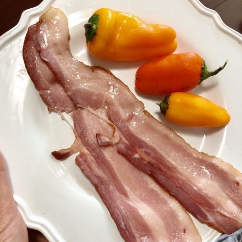 Snack time again – bacon with sweet baby bell peppers. This combo was LEGIT!!! Also I ended up making myself a second plate. I say this because I saw that some of you were concerned that I was starving myself. Guys, I promise you – I am very full and very happy. My Fit Journal says what I am eating and these pics are merely to give you an idea of what I’m having, not the exact quantity.