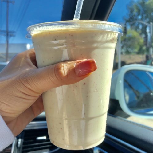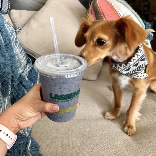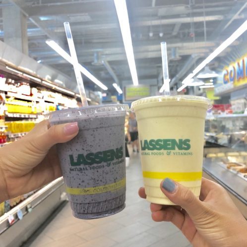 So even though we had just eaten, Jackelyn and I kinda have bottomless pits for stomachs so we felt like we wanted to have smoothies. So went into Lassens and I got myself the blueberry keto smoothie and Jackelyn got the Paleo peach.