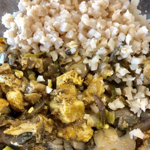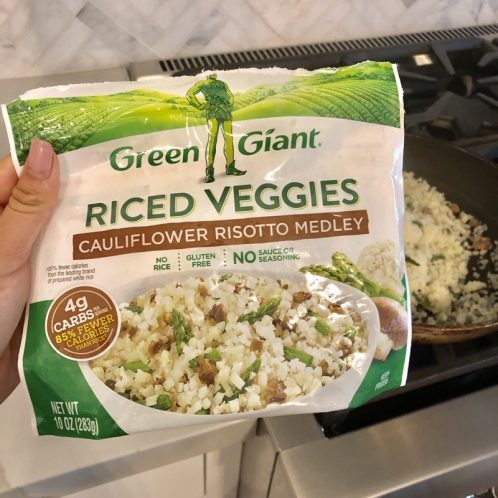 For dinner, I cooked up some cauliflower risotto. This pack came with asparagus and mushrooms.