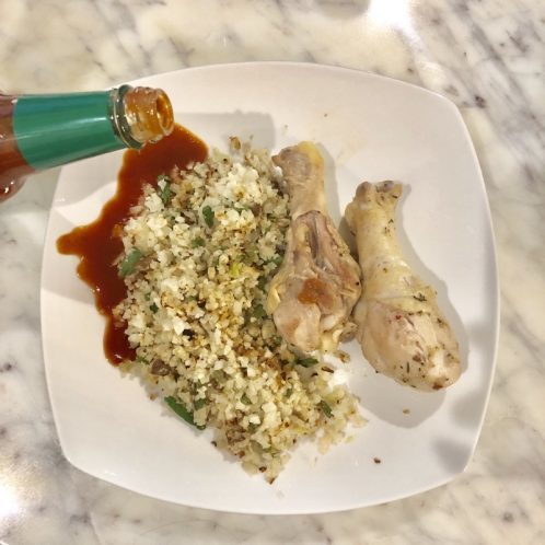 I also made myself some chicken drumsticks and poured a ton of sriracha all over everything…but guess what guys? It’s not your normal sriracha!