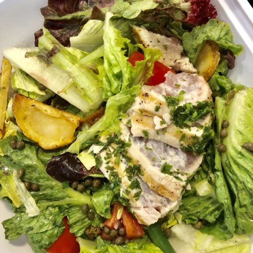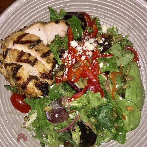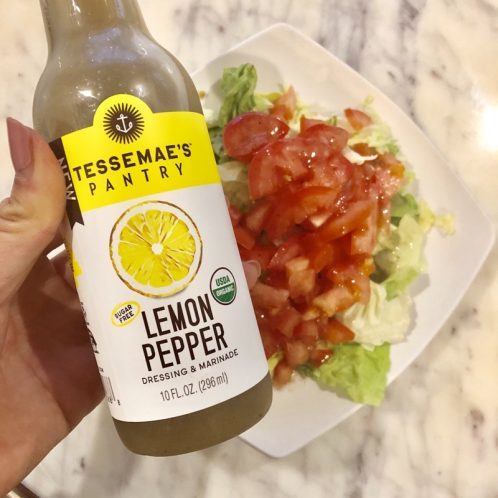I also had a side salad with some Tessamae‘s lemon pepper dressing. This dressing is great if you’re on Whole30. There’s never any dairy or added sugars in it.