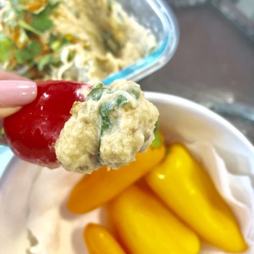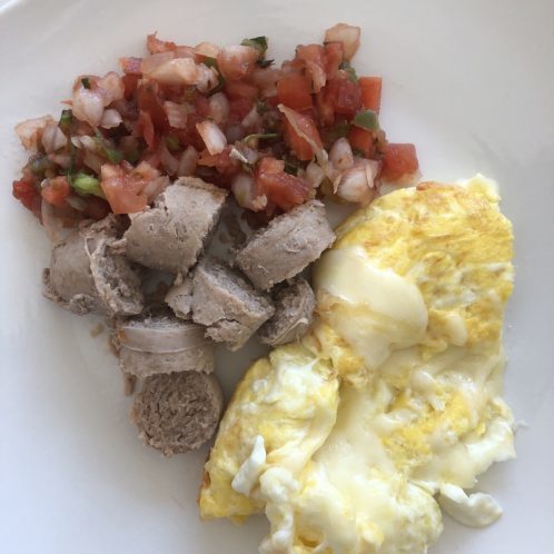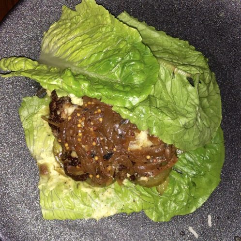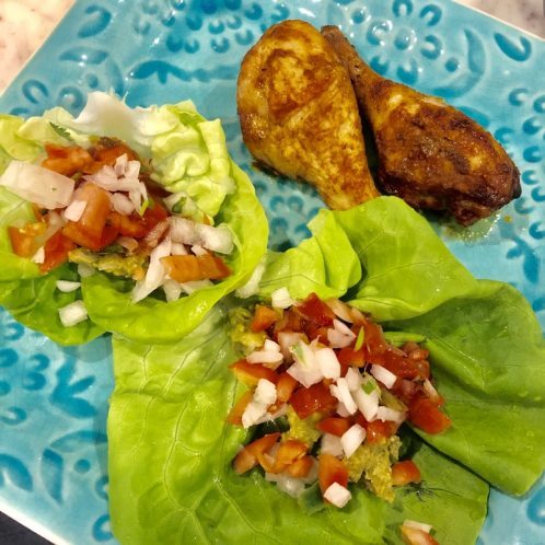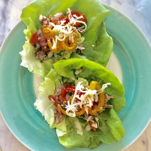 Next, for lunch I made tacos. Sam had regular tortillas. I swapped mine for butter lettuce. Inside there is ground turkey, pico de gallo, roasted peppers, fresh homemade guacamole, and a little bit of mozzarella cheese on top. These were AMAZING.