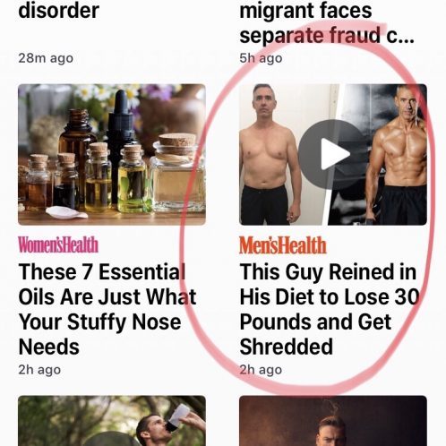 Then she said just after a few scrolls, we saw a link to a Men’s Health article applauding a man for basically doing the same exact thing. “This Guy Reined in His Diet to Lose 30 Pounds and Get Shredded.”