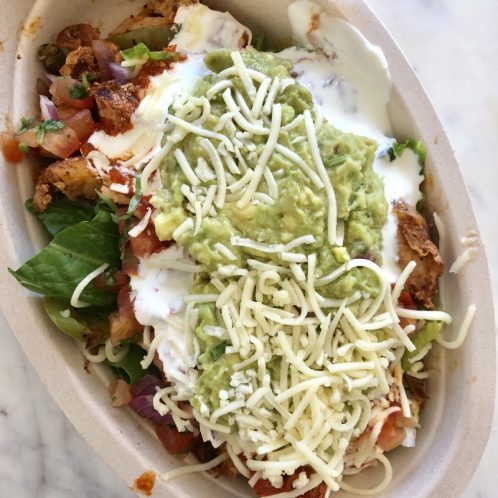After Barry’s, I walked to Chipotle and got myself a chicken salad with guac, sour cream, cheese, pico de gallo, salsa, and romaine lettuce. You know, I’m not sure how I feel about have the guac, sour cream, AND cheese all in one. I felt like it was excessive and overstimulating to my tastebuds. I think I could do without the sour cream and cheese.