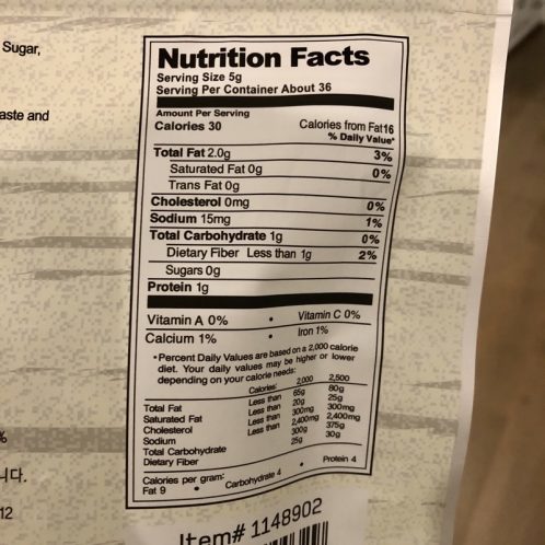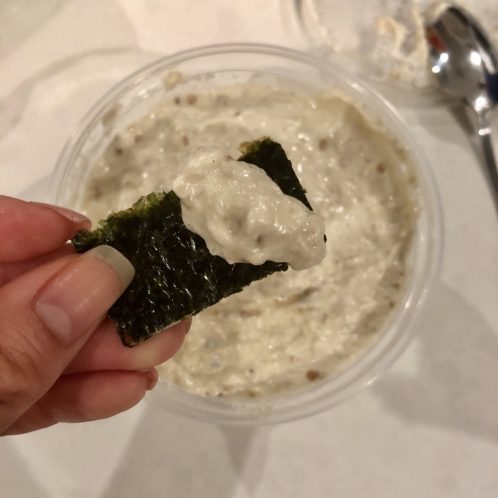 I found these seaweed crunches at Costco and they are surprisingly very low carb! A serving has 1g of carbs, 1g of protein, 2g of fat and it comes in at just 30 cals. Plus – it tastes SO GOOD.