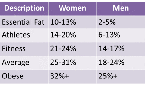 Body fat % goal: 20% (so I can be in the “athlete level” for women)