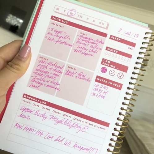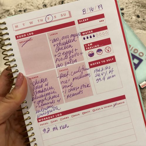 Having this page filled out makes me feel SO GOOD. If any of you are like me and love checking things off, this page gives you that high. It’s my “Game Plan” page where I schedule out what workouts I’m gonna do for the week. I love seeing every box filled in.