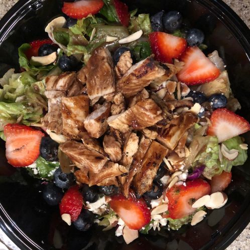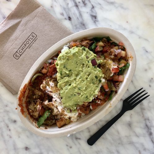 For lunch, I had a Chipotle chicken salad with guac, pico de gallo, tomatillo salsa, romaine lettuce and fajitas.