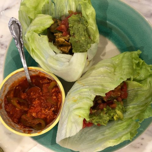 For lunch I ate leftover chicken shawarma with butter lettuce and meal prepped turkey chili. Ha, I am almost done with it – I promise. Will cook something new next week.