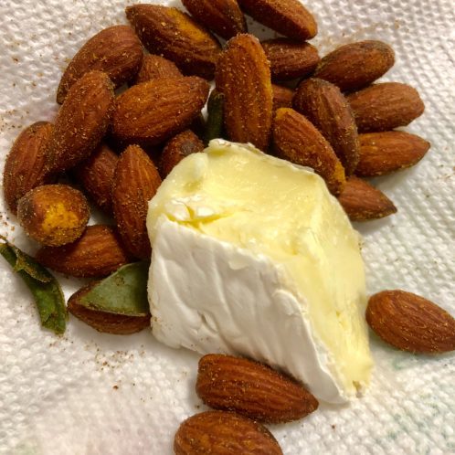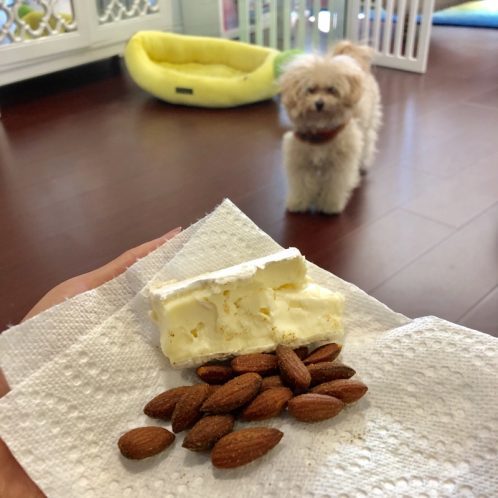 Snack. Brie cheese and Thai Chili Almonds. Nothing new here folks. I love that George is just staring at my snack. My the way, he loves plain cashews and peanuts more than he loves traditional dog treats. He truly is my dog :)