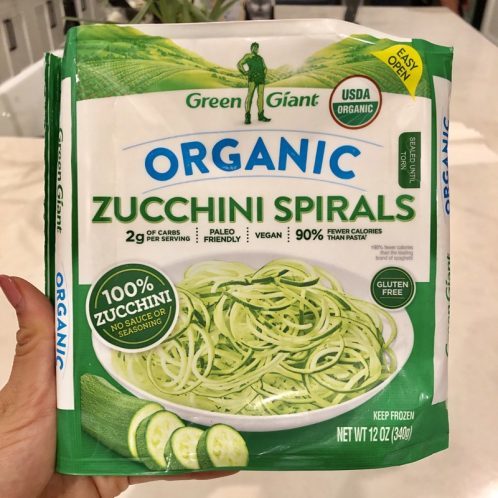 Dinner was much more interesting! I bought this bag of frozen zoodles from Costco months ago but never felt like cooking with it. Until last night!