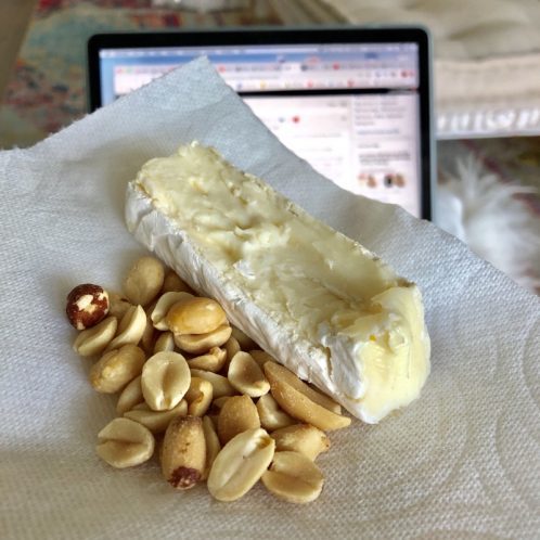 As a snack, I had some 50% less salted peanuts and a slice of brie cheese. Almost done with my brie. I’ll try a new snack next week.