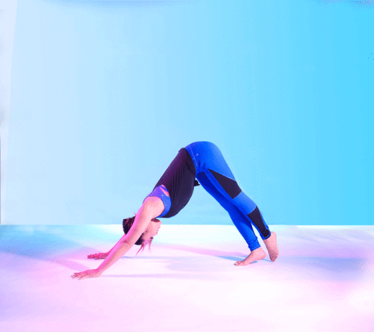 In a down dog, lift one leg up as high as you can, hold for a sec, then bring it back down.