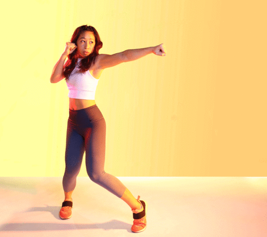 The easiest way to describe this is to basically punch forward with your right hand then your left hand as you’re standing sideways. You will twist your body as you punch. Go hard and get all that anger out!