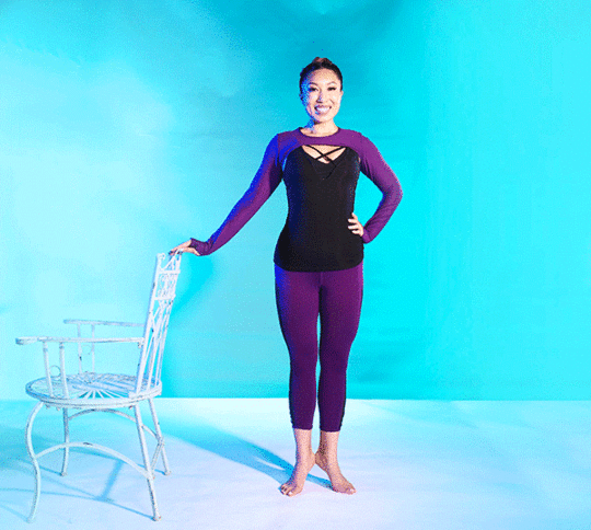Today’s barre workout requires a stable chair. There are 6 moves. Do each rep with control. Follow the GIFs to see how to execute the exercises with proper form! Do 1 round if you’re just trying to sneak in a quick workout. But if you want to challenge yourself, see if you can repeat this set 3-4 times through!