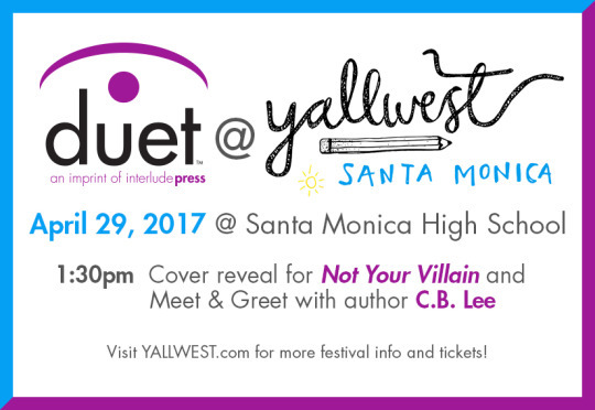 In Santa Monica, CA, come join us in Booth 303 at @yallwest as we reveal the cover for @authorcblee‘s anticipated Not Your Villain, book two in The Sidekick Squad series. We’ll also be raffling off a Kindle in support of Equality NC and having a special one-day pre-order special of four upcoming YA novels: The Seafarer’s Kiss, Grrrls on the Side, The Rules and Regulations of Mediating Myths and Magic, and Not Your Villain.