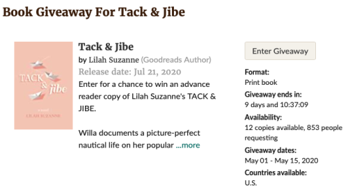 Head on over to Goodreads for a chance to win a copy of Tack & Jibe!